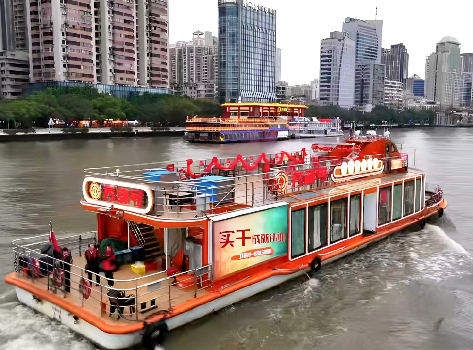“劳动号”客轮缓缓驶离码头。船上的“红色印记”展板,串联起珠江沿岸的红色工运地标。中国劳动组合书记部南方分部旧址、第一次全国劳动大会旧址、中华全国总工会旧址……百年工运史,就这样在珠江上流动起来。